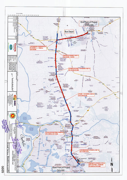 | প্রকল্পের অবস্থান | মূল প্রকল্প গাজীপুর থেকে শাহজালাল ইন্টারন্যাশনাল এয়ারপোর্ট পর্যন্ত এবং বাংলাদেশ সেতু কর্তৃপক্ষের অংশ উত্তরা হাউজবিল্ডিং হতে টঙ্গী চেরাগ আলী মার্কেট পর্যন্ত |